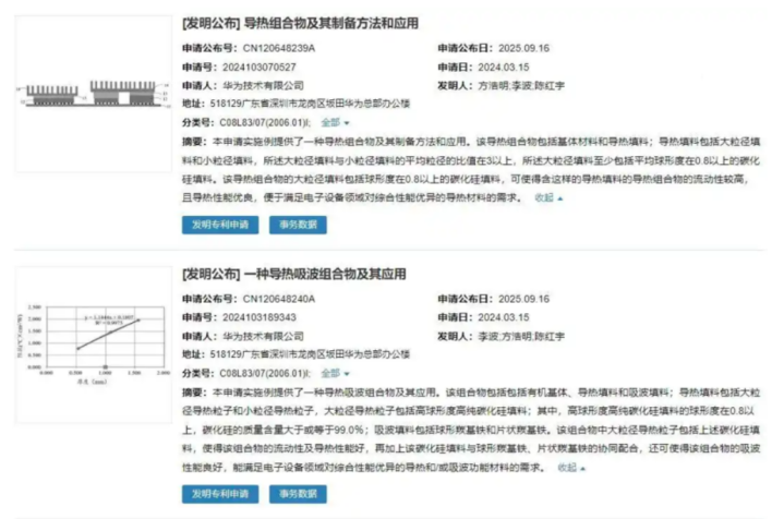 据披露,华为已申请两项散热芯片相关专利,分别为“导热组合物及其制备方法和应用”与“一种导热吸热组合物及其应用”。前者主要针对电子部件及芯片封装领域,后者则涉及电路板应用,两项专利共同彰显了散热处理器在设备中的重要性。